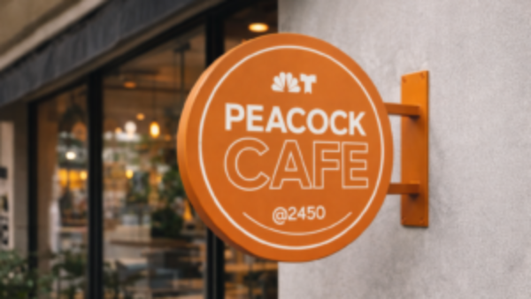Round blade signs create a bold, street-facing display that’s easy to spot from a distance. This circular café sign features a vibrant orange finish with clean white lettering, giving the storefront a warm and welcoming presence while ensuring clear visibility for passing foot traffic.